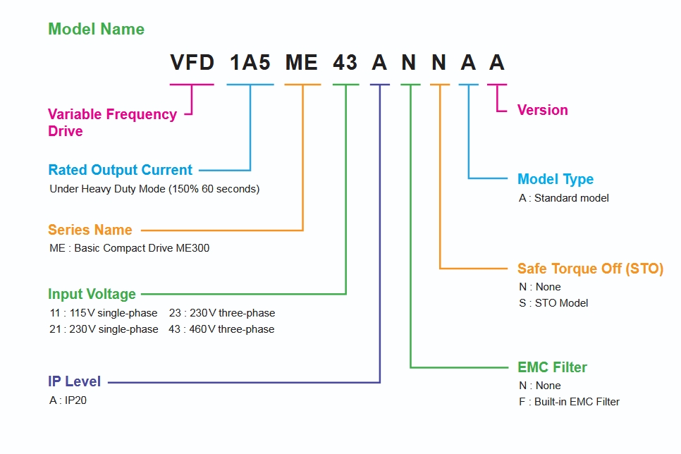Delta inverter ME300 Model:VFD7A5ME21ANNAA(2HP/1.5KW)Input 220V 1-Phase Output 220V 3-Phase
